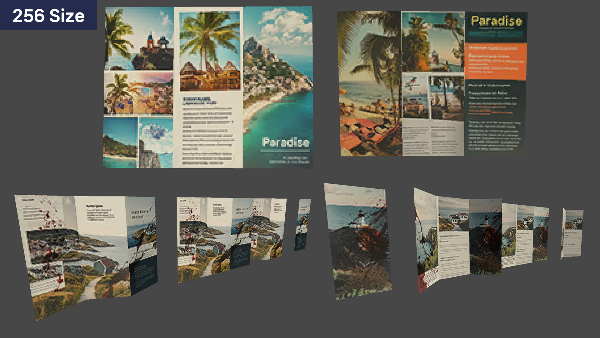 • Structure: All brochures include both front and back textures, allowing for more immersive environmental placement.