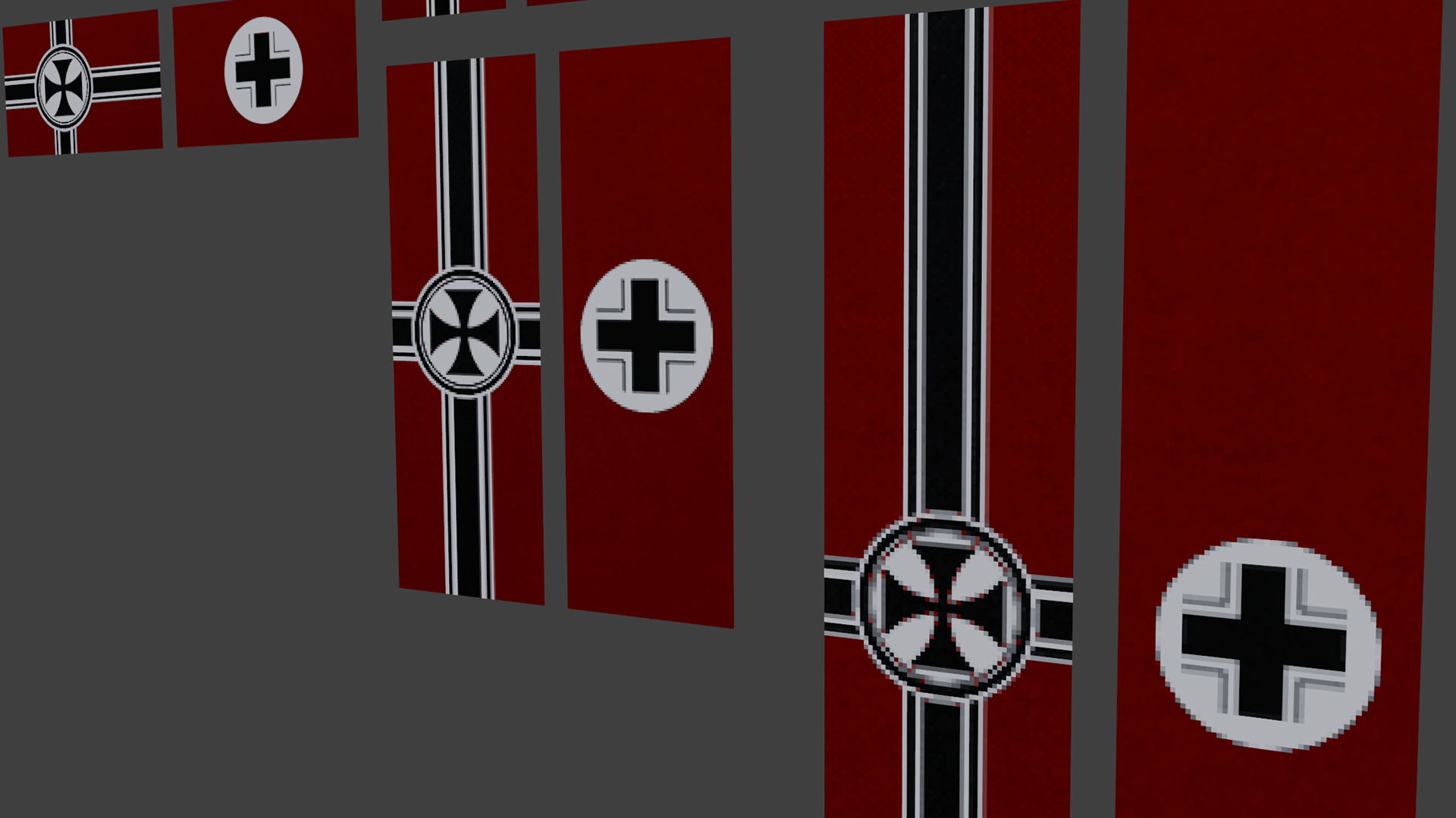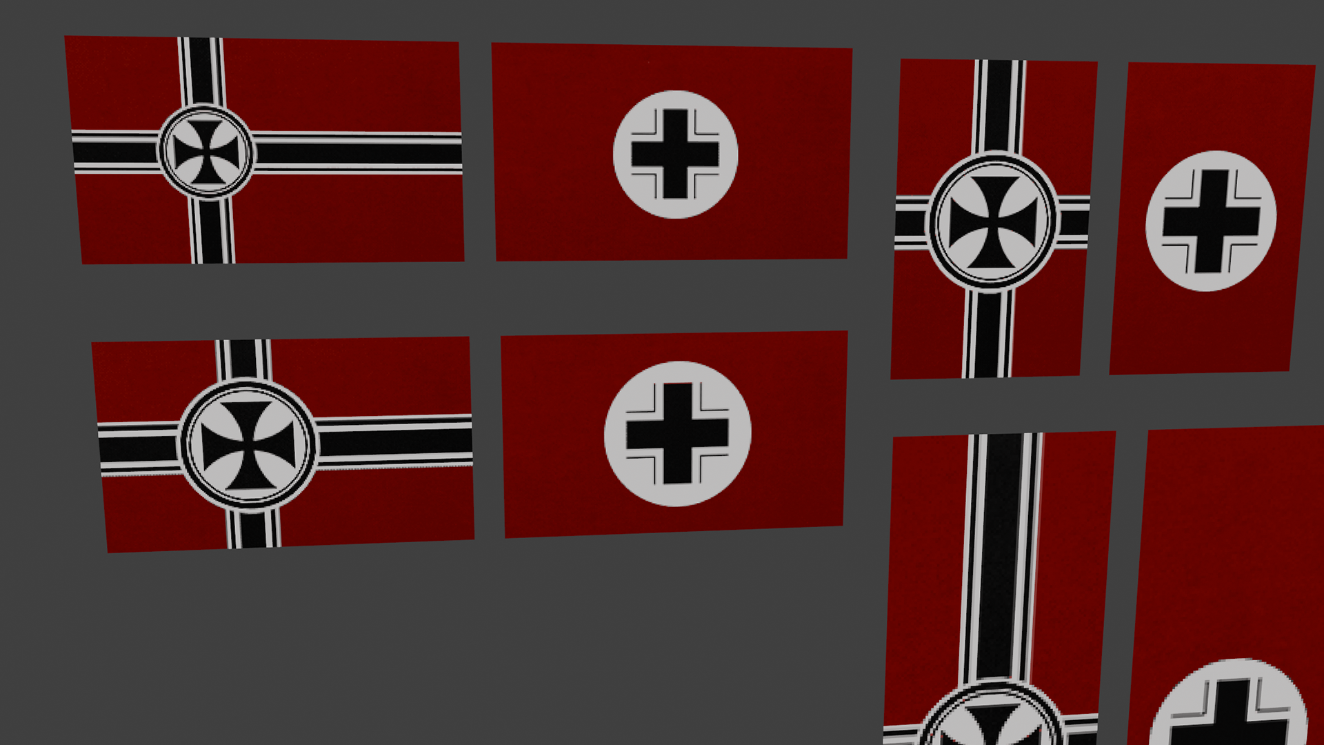 Instead of using sensitive real-world symbols, fictional alternative insignia were adopted so the asset can be safely used in projects worldwide without legal or ethical concerns.